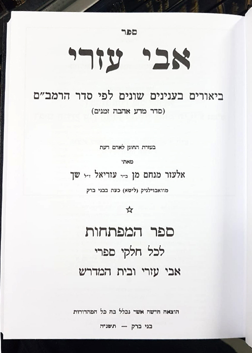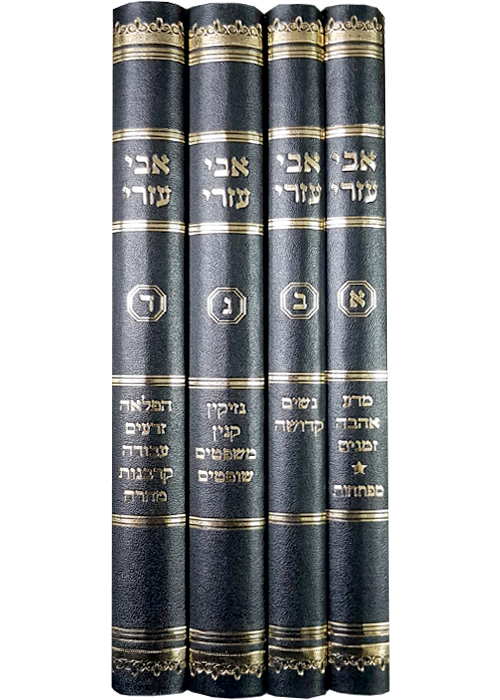 אבי עזרי על הרמב"ם - ד' כרכים - לרבי אלעזר מנחם מן שך זצ"ל. ביאורים בענינים שונים לפי סדר הרמב"ם. ספר לחברים על הספר 'אבי עזרי על הרמב"ם - ד' כרכים'