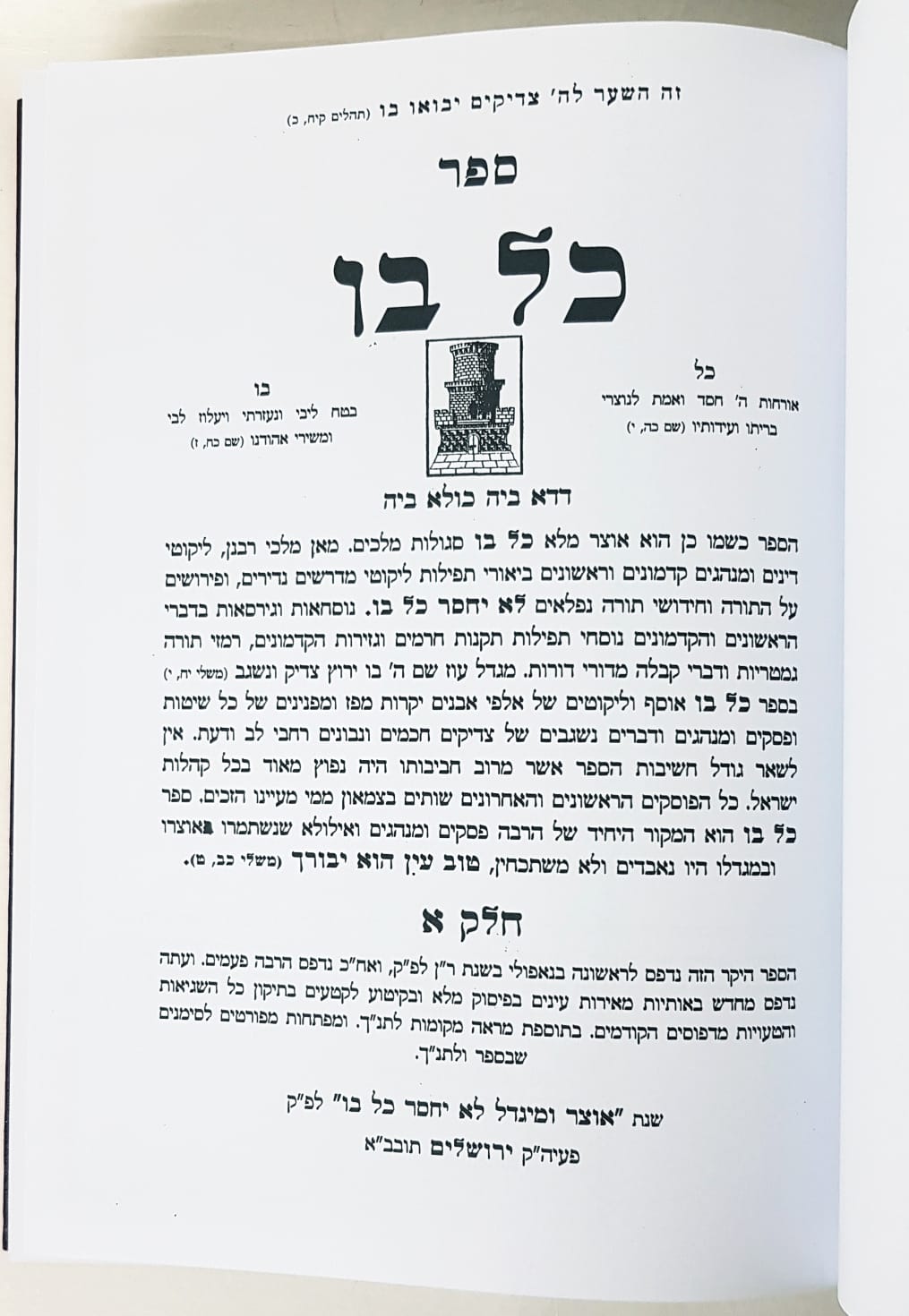 ספר כל בו - השלם, 2 כרכים, כריכה קשה. כלבו הוא ספר הלכה שנכתב בתקופת הראשונים. ספר מנהגים ודינים לכל השנה. בהוצאה חדשה ומפוארת עם מפתחות.
