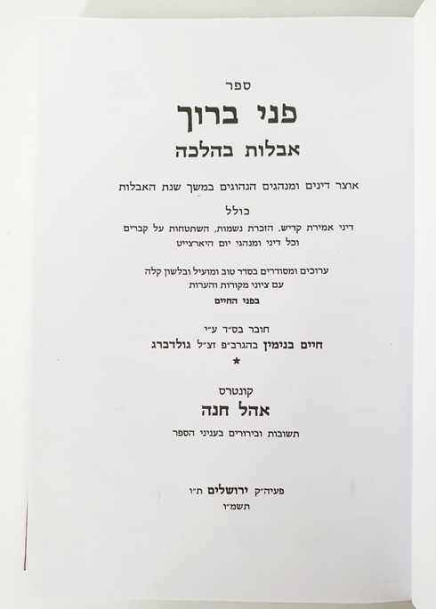 פני ברוך - אבלות בהלכה - הרב חיים בנימין גולדברג