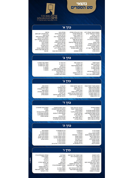 הלכה למעשה בכל בית. ' מהדורת בן משה' - חוברות ההלכה המפורסמות, בפורמט של שישה כרכים נפלאים בכריכה קשה ומהודרת. בין הפרויקטים הגדולים בעולם היהודי ללימוד תורה. סט צורבא מרבנן מקיף את ארבעת חלקי השולחן ערוך, ומחולק לשיעורים הלכתיים ערוכים וממוקדים.