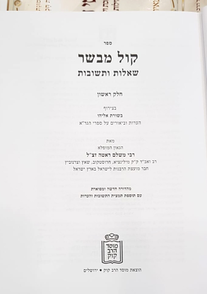 שו"ת קול מבשר - ב' כרכים - מוסד הרב קוק
