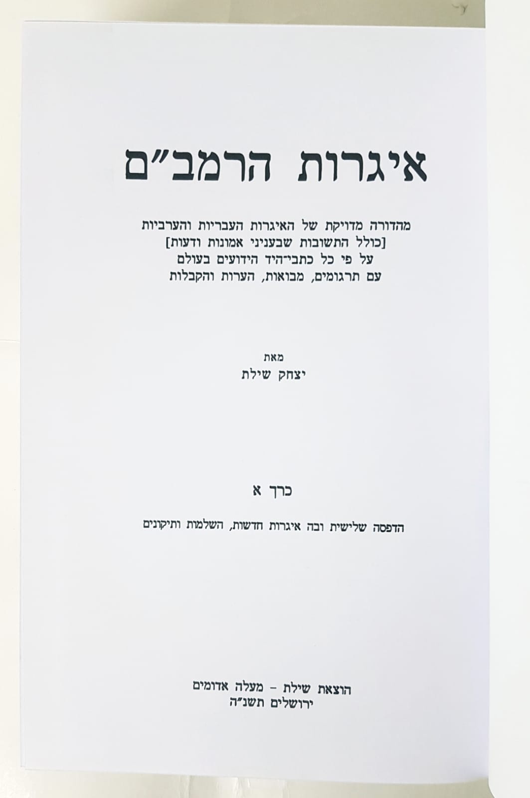 הוצאה מיוחדת של הרב שילת שליקט את איגרות הרמב"ם וכתב ביאור על הדברים.