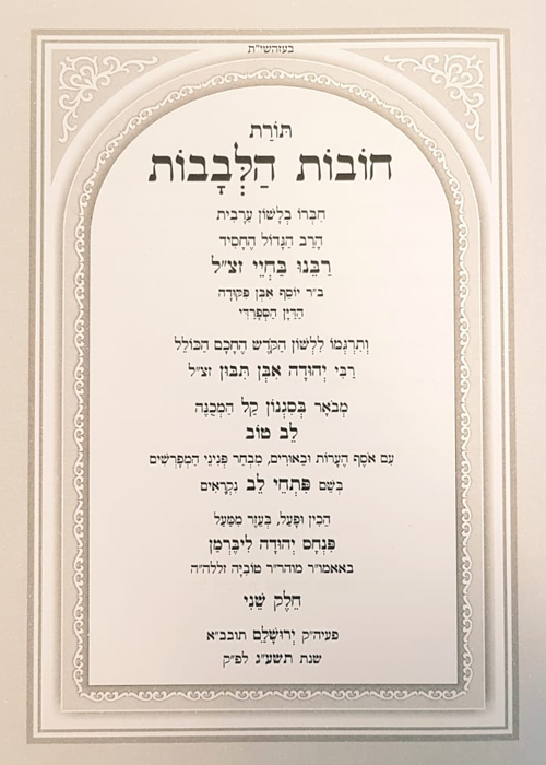 לכן עלינו לקבל ברגשי גיל וחדות קודש, ולברך על בשורה טובה כי באה, בהופעה מהדורת הספר ״חובות הלבבות״ עם הביאור הנחמד״ לב טוב״, המגיש לנו את דברי המחבר בשפה קלה ושוטפת, עד