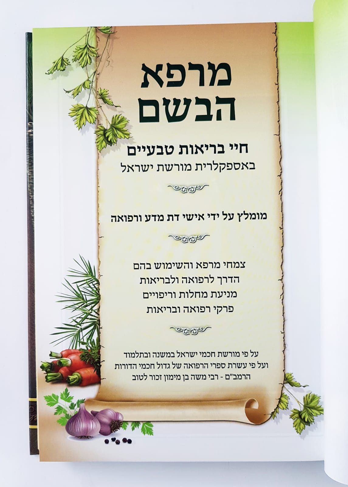 עוסק ברפואה ביהדות תוך המבות ברפואת הרמ"ם . בריאות וצמח מרפא ומובאת בו רשימת צמחים, פירות וירקות בהם נתברכה ארץ ישראל ותכונות המועילות אשר נאספו ממקורות רבים הספראה , בעיקר מכתבי הרפואה של הרמב"ם ומספרו יד החזקה הנוגעת להרמב"ם וכן מספרה. חז"ל . הספר אינו בא לתפוס את מקום הרופא כי אם להשלים אותו ולקיים יחסי גומלין עם הטבע לאורח חיים בריא. הספר יצא בשפות רבות וביניהם עברית אנגלית צרפתית וספרדית.
