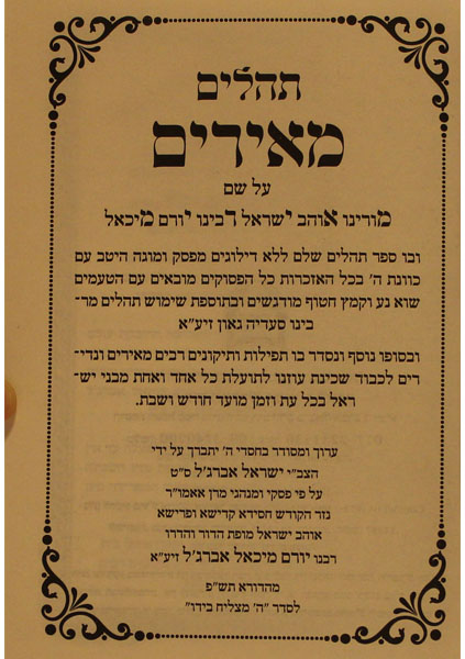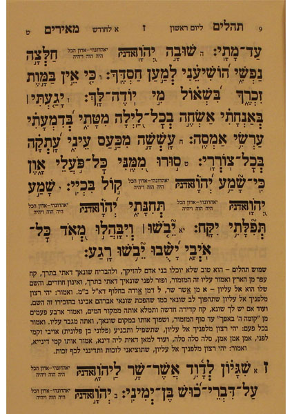 ספר תהילים שלם ללא דילוגים מפסק ומונה היטב עם כוונת ה' בכל האזכרות כל הפסוקים מובאים עם הטעמים מודגשים ובתוספת שימוש בתהילים מרבינו סעדיה גאון זיע"א