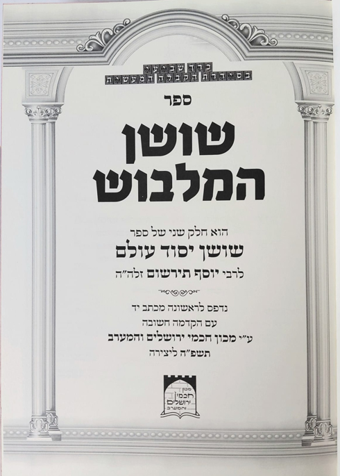 שושן המלבוש - רבי יוסף תירשום | קבלה מעשית. והוא חלק שני של ספר - שושן יסוד עולם. למקובל האלוקי כמוהר״ר רבי יוסף הירשום זלה״ה.