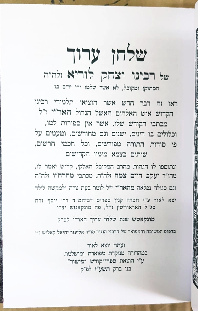 ספר לחברים על הספר 'שולחן ערוך האר"י'