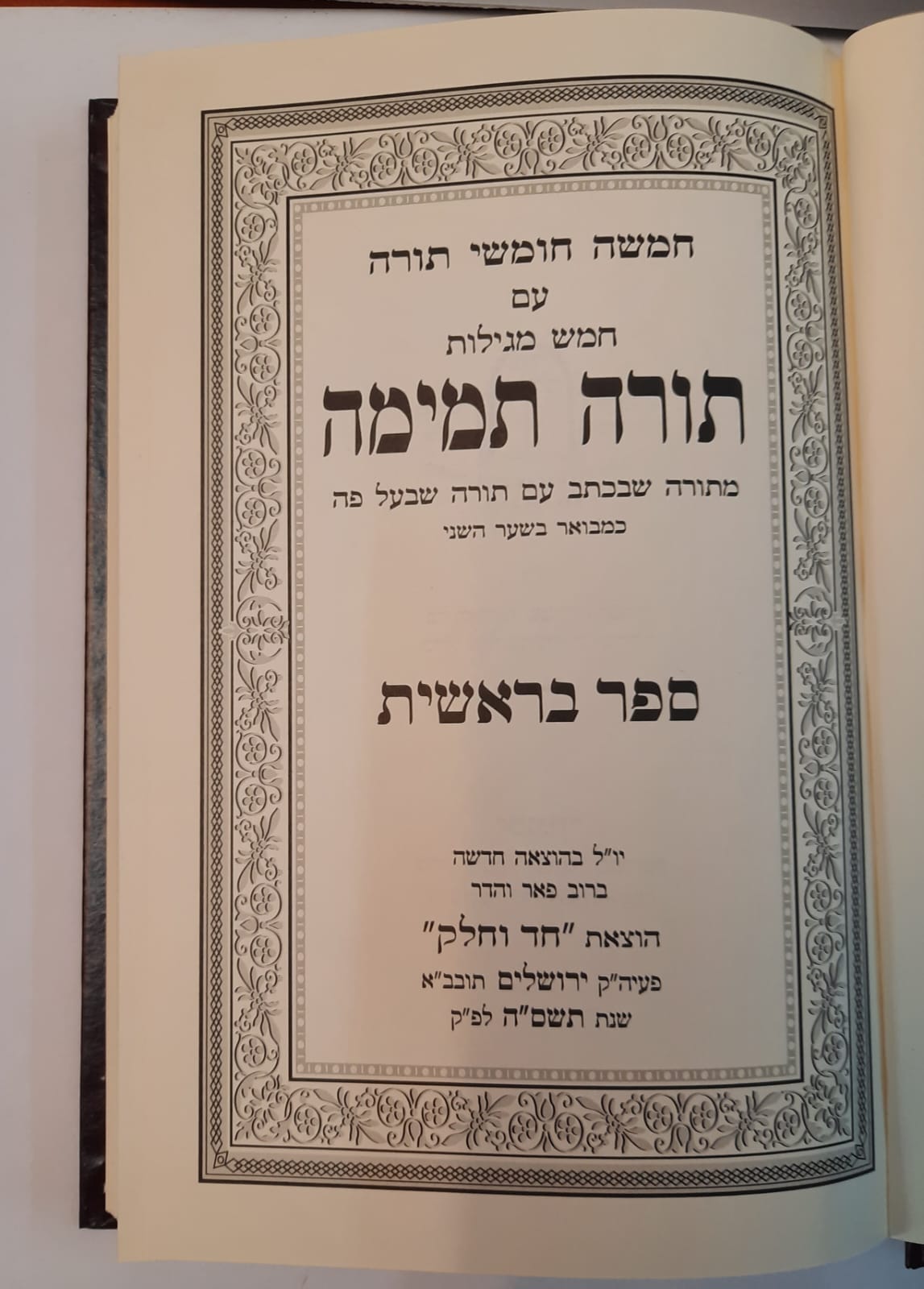 חומש תורה תמימה  גדול -  הוצאה חדשה  ומוגהת היטב של חומש תורה תמימה