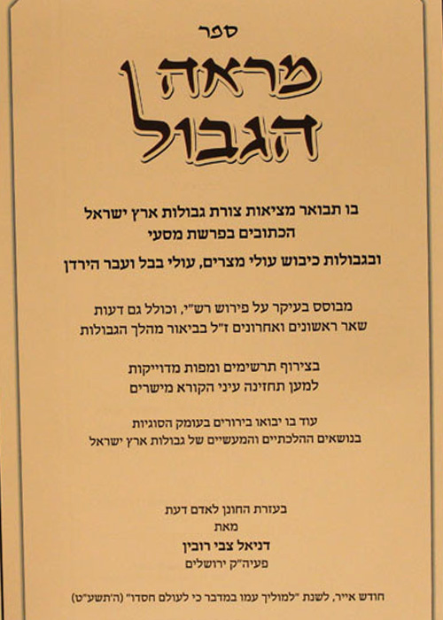 ספר הגבול בו תבואר מציאות צורת גבולות ארץ ישראל הכתובים בפרשת מסעי ובגבולות כיבוש עולי מצרים, עולי בבל ועבר הירדן מבוסס בעיקר על פירוש רש"י, מלבד דעות שאר ראש ובביאור מהלך הגבולות בצירוף תרשימים ומפות מדויקות למען תחזינה עיני הקורא מישרים עוד בו. יבואו בירורים בעומק הסוגיות בנושאים ההלכתיים והמעשיים של גבולות ארץ ישראל.
