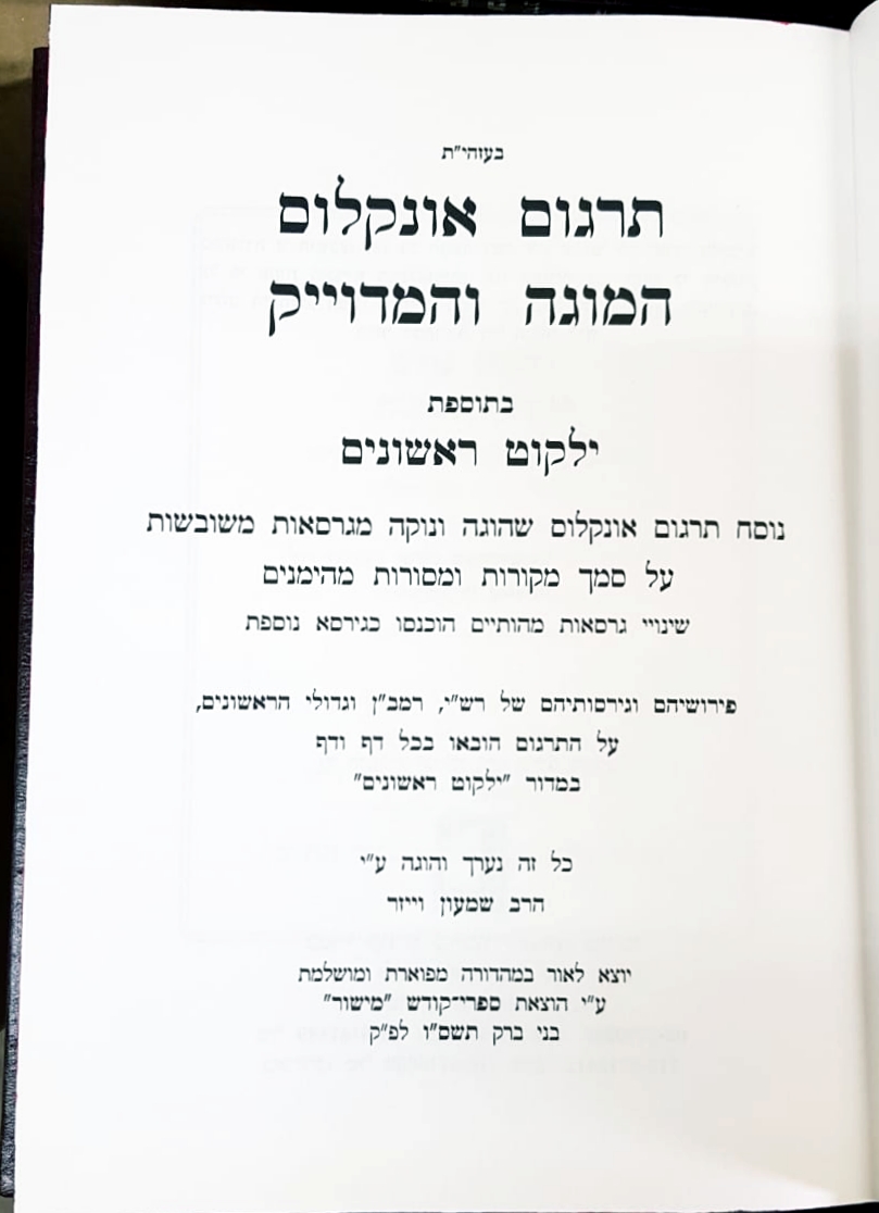 נוסח תרגום אונקלוס שהוגה ונוקה מגרסאות משובשות על סמך מקורות ומסורות מהימנים