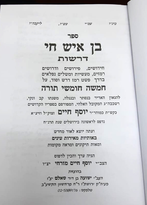 לרבנו רבי יוסף חיים מבגדאד - הבן איש חי זי"ע.