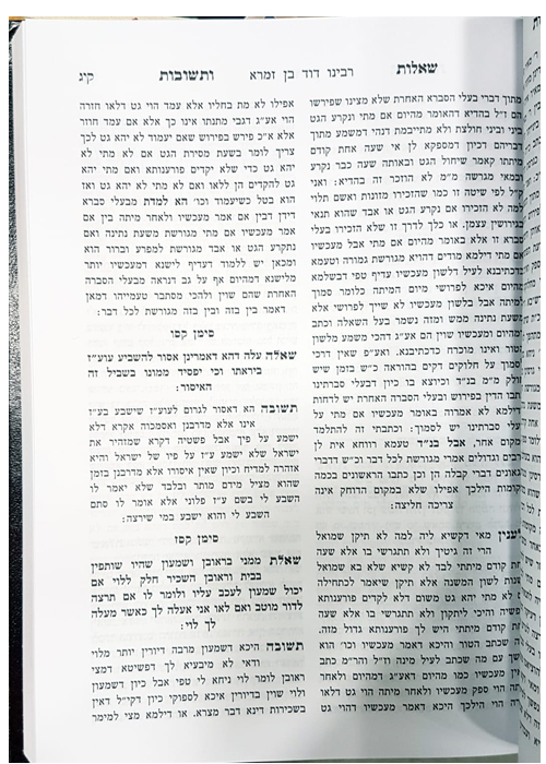 שאלות ותשובות לרבי דוד בן זמרא (רדב"ז). שהיה מחשובי הפוסקים, בדור שבין תקופת הראשונים לתקופת האחרונים.